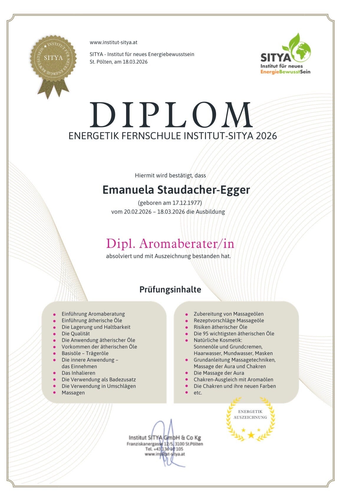 Entdecken Sie die Fundamente meines Wissens und meiner Expertise. Hier erfahren Sie mehr über meine Ausbildungen und Zertifikate, die die Qualität und Professionalität meiner Arbeit im Klang & Duft Atelier sichern.